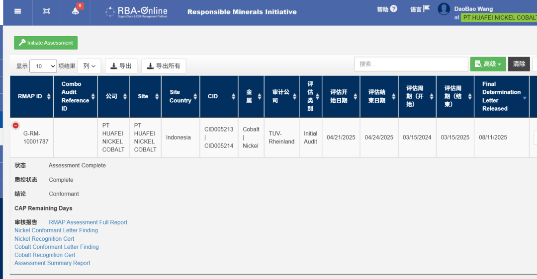 8月,負責任礦產倡議(The Responsible Minerals Initiative,簡稱RMI)官方網站發布消息,華飛鎳鈷(印尼)有限公司成功通過負責任礦產保證流程(Responsible Minerals Assurance Process,簡稱RMAP)審核,華飛成為印度尼西亞同時對鎳、鈷金屬供應鏈開展礦產供應鏈盡責管理并通過 RMAP 審核的冶煉企業。
