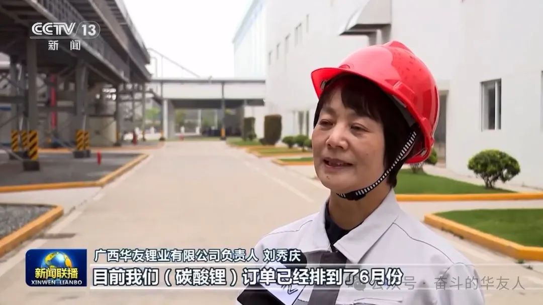 廣西華友鋰業有限公司負責人劉秀慶:“目前我們(碳酸鋰)訂單已經排到6月份,產線都在滿負荷生產狀態。”