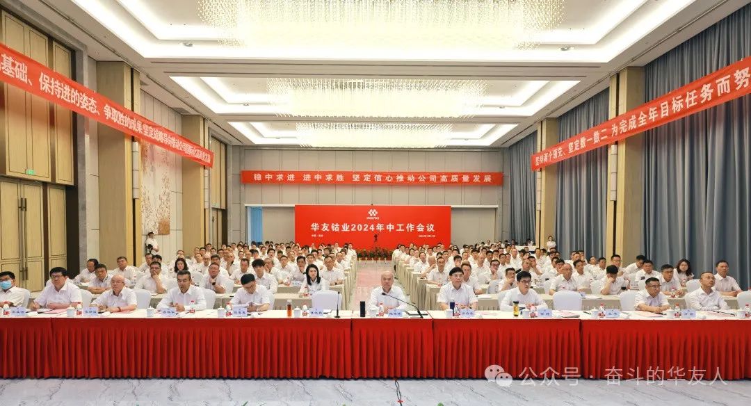 7月27日,華友鈷業2024年中會議在桐鄉總部召開。目的是總結、檢討上半年的成績與不足,分析研討新的環境形勢,理清工作思路,明確工作目標,部署重點任務,進一步凝聚奮進力量,扛起使命擔當,堅定不移推動公司轉型升級和高質量發展!